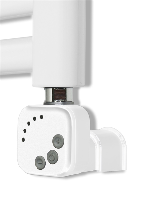 Elpatron med dold elanslutning och termostat. 2 timmars timer- och boostfunktion. Värmen kan regleras i fyra olika steg från 30-60°C. 300 W. Dubbelt inbyggt skydd mot överhettning. Antifreezefunktion. IP44. Passar handdukstorkar från NORO och Hafa.
